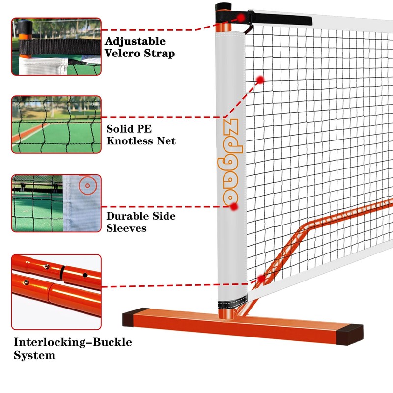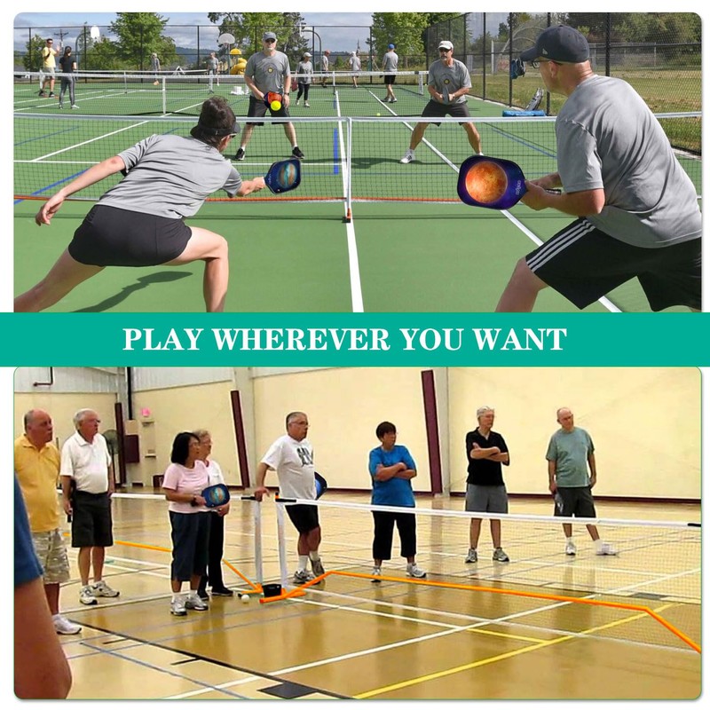 - -【Easy to Install and Remove】Unlike most other similar nets, this 2-in-1 pickleball net is designed with pop button, easy to operate, no tools required, with detailed installation instructions to make the installation easier, easy to install and remove in 3-5 minutes. No need to wait to start playing