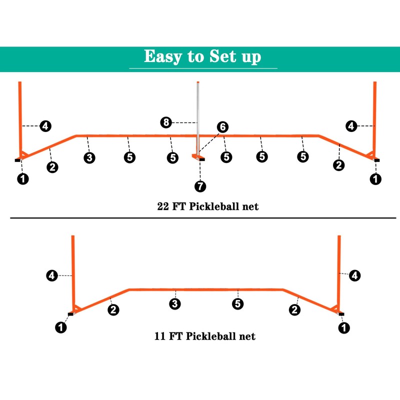 - -【YOU WILL GET】The complete frame of the complete multi-functional net system, one 22FT pickleball net, one 11FT half-court pickleball net; 1 x 600D lightweight and durable portable carrying bag, extra large capacity design, more convenient to use; 2 x 40-hole yellow pique nets, seamless one-piece design to ensure long-lasting durability and no deformation, come to the outdoor to enjoy the fun of the game with your family and friends