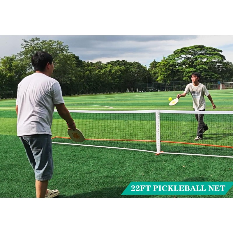 - -[22FT and 11FT 2-in-1 Pickleball net 】This portable pickleball net is equipped with two nets, one 22FTx36 inch net that meets the official regulations, and an 11FT wide half-court practice net to meet your different needs, you can quickly make up the net into a 22FT inch or 11FT net according to your own needs, both sizes are designed to meet your needs. , suitable for backyard, beach, driveway or any flat area. You can enjoy the game with your family and friends