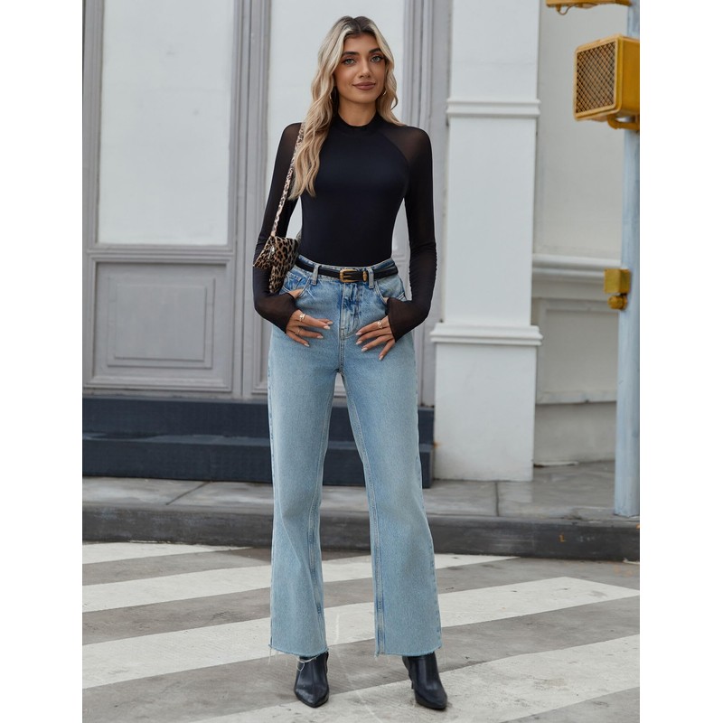 - Features: This women's mesh long-sleeve top is a little sexy but still elegant, mock neck, sheer mesh raglan sleeves, double-lined, offers a sophisticated touch, with multiple floral, leopard print, tie-dye, and leaves prints, making you more feminine and charming.