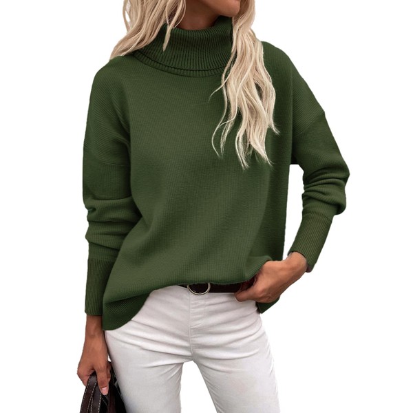 Zeagoo Turtleneck Jumpers for Women Ladies Long Sleeve Tops Casual Knitted Sweater Elegant Roll Neck Sweaters Autumn Winter Army Green XL