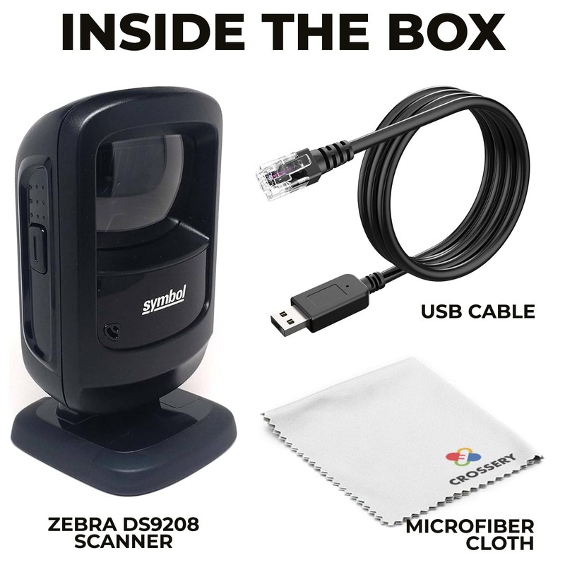 - Complete Zebra Scanner Bundle for Increased Productivity: The hands-free Zebra DS9208 barcode scanner simplifies your workflow by enhancing scanning efficiency. Quickly scan 1D and 2D barcodes from screens or paper without holding a device