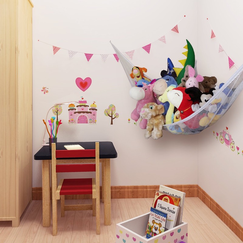- 【EASY INSTALL】 Install to a corner of children's room, great solution for stuffed animals storage. Makes your room neat and easy to get toys