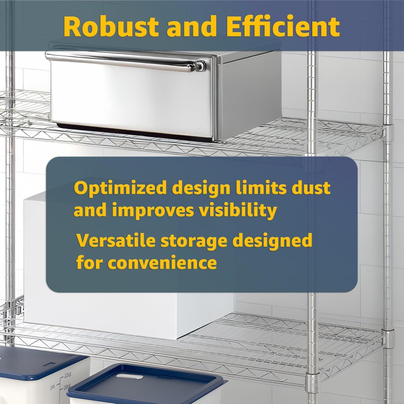 Commercial-Grade Chrome Construction: Constructed from premium chrome-plated steel, this shelf offers exceptional durability, and longevity, making it ideal for warehouses, professional kitchens, and commercial storage setups.