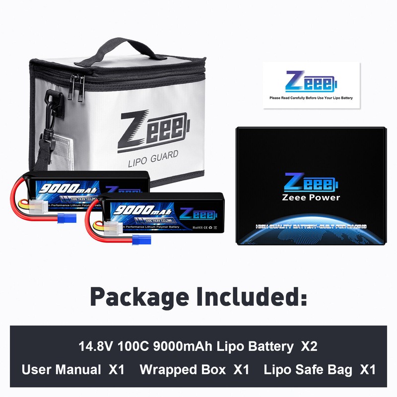 **Zeee 4S Lipo Battery 9000mAh 14.8V 100C Soft Case Battery EC5 Connector 2 Pack Batteries with 1 Pcs Lipo Safe Bag Fireproof Explosionproof Bag for Storage Charging**