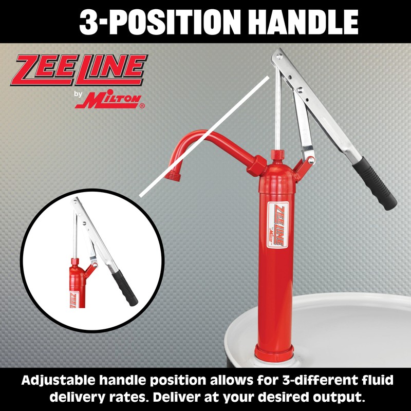 ZEELINE BY MILTON Hand Operated Lever Drum Pump, For 15-55 Gallon Drums, 1-Gallon per 9 Strokes, All Steel Body (ZED-S)