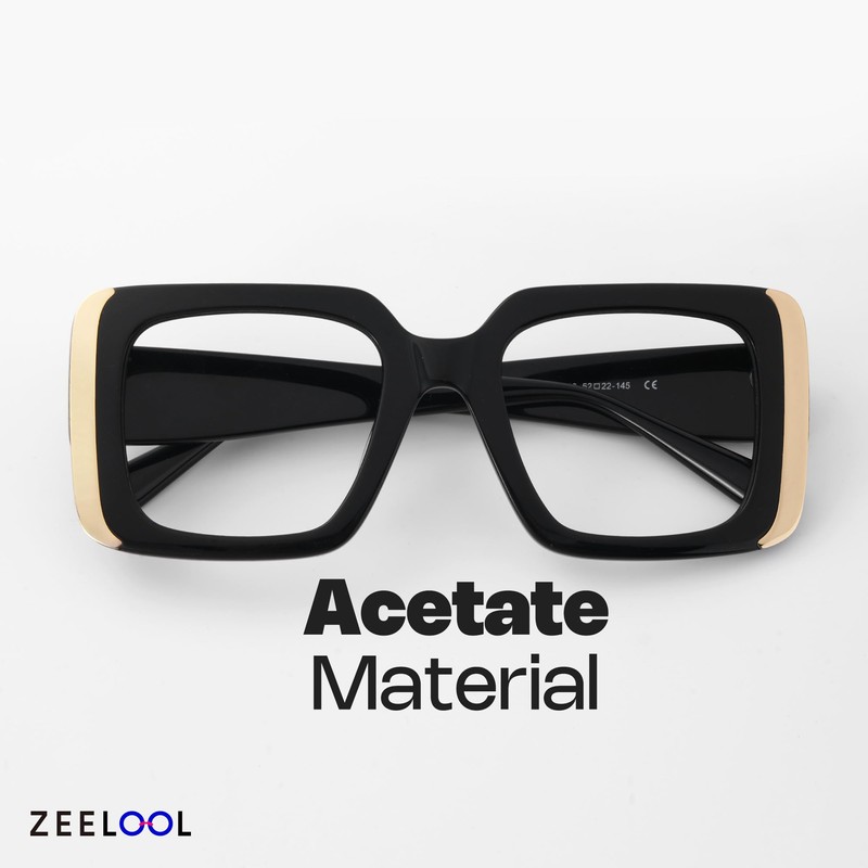 Zeelool Acetate Rectangle Glasses Frame, Blue Light Blocking Glasses for Women Jesse ZJGA440580, Black, Medium