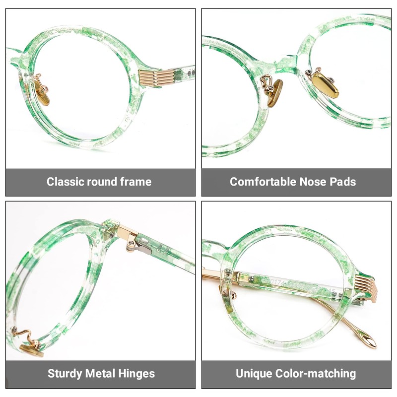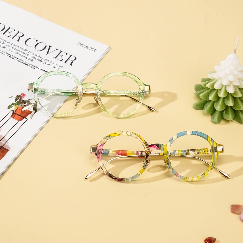Zeelool Retro TR90 anteojos redondas para mujer con lente transparente Dylan FP0174, Fp0174-01 Verde Floral, M
