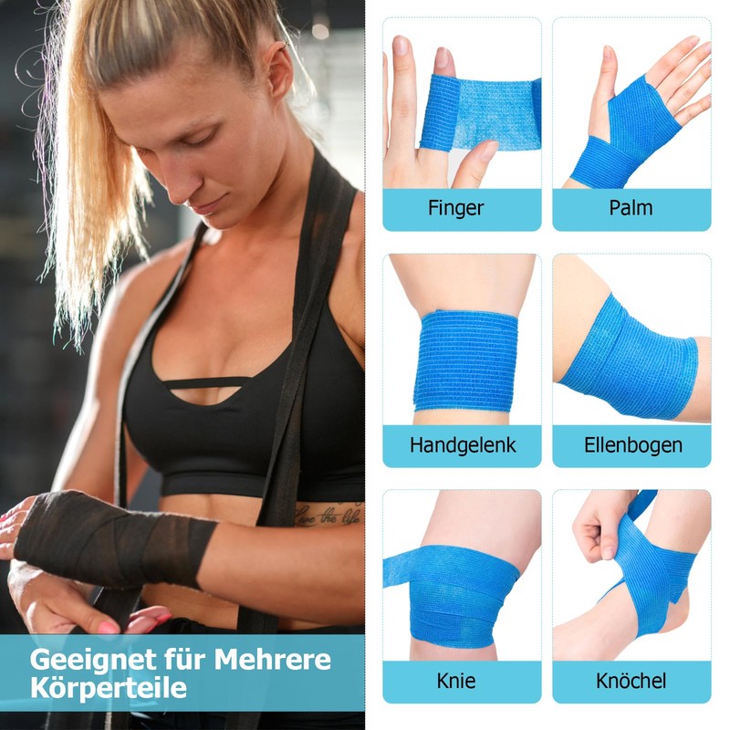 - ??VIELSEITIGE VERWENDBARKEITEN??Das selbsthaftende bandage kann f??r eine Vielzahl von Trainings- und Sportarten verwendet werden und bietet guten Halt und Schutz f??r verschiedene K?rperteile. Es kann auch in der Ersten Hilfe verwendet werden, um Schwellungen, Verstauchungen und Schmerzen zu lindern. Es eignet sich auch als Tierbandage.