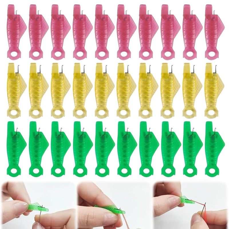 - 30 pieces needle threaders: 3 perfect colour combinations, namely 10 green, 10 yellow, 10 pink, small and lightweight, easy to use, you no longer need to wet the thread and try it again and again, you can save time and energy when threading.