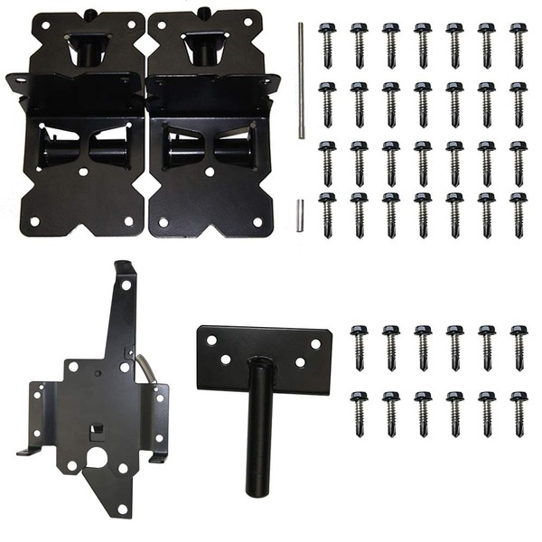 ZEKOO Gate Hinges Self-Closing for Vinyl gate kit and PVC Fences with Latch Black Color