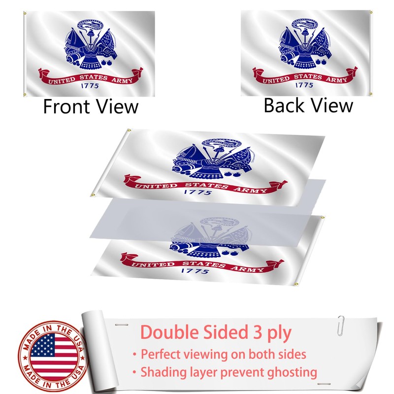 - High-Quality 1775 White Army Flag: Our 3x5 outdoor flag is made with premium-quality polyester material, ensuring durability and vivid colors that won't fade easily. Features a unique three-layer design, with the middle layer being blackout fabric, ensuring that both sides of the flag can be read correctly.