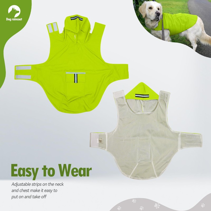Zellar Dog Raincoat with Hood, Collar Hole, 100% Waterproof Ultra-Light Breathable Rainwear Rain Jacket with Safe Reflective Strips for Medium to Large Dog, Green, 3XL