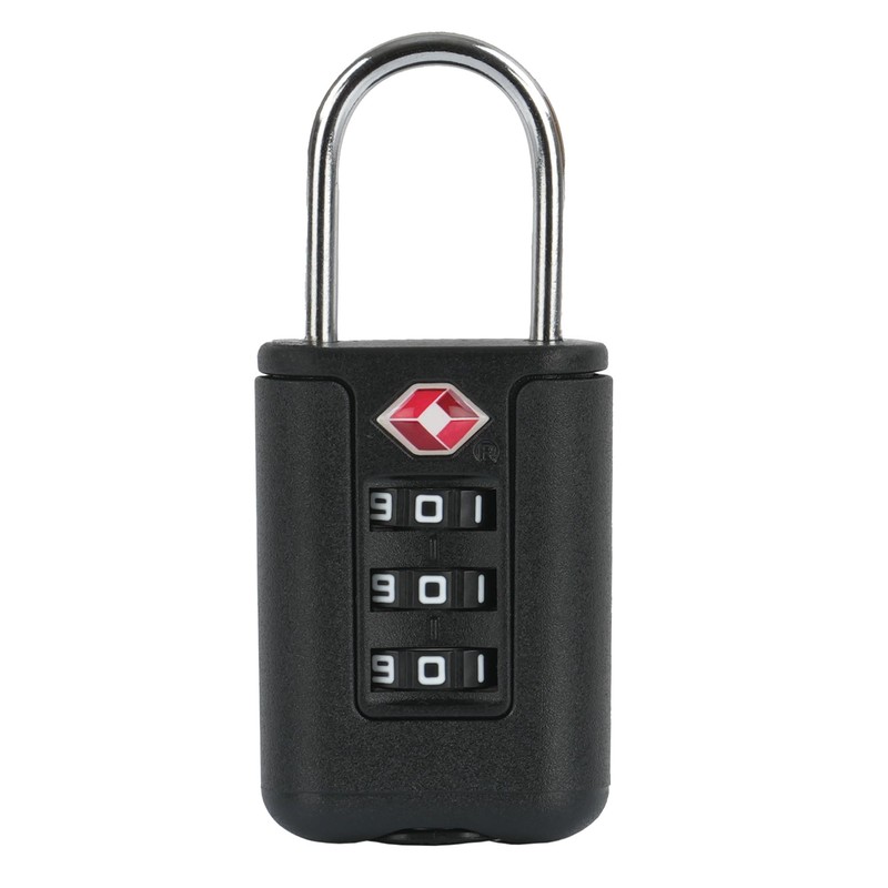 - EINFACHE VERWENDUNG | Mit Eingabe des individuell festgelegten Codes lässt sich das Schloss durch Drücken des Knopfes an der Unterseite des Schlosskörpers bequem öffnen. Das TSA Schloss mit Zahlencode kann jederzeit und beliebig oft geändert werden. Durch das geringe Gewicht von nur 18,3 Gramm eignet sich das Schloss ideal als Reisezubehör.