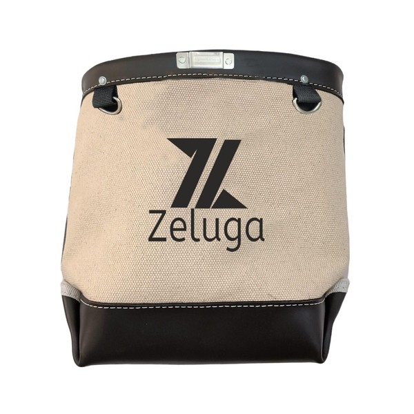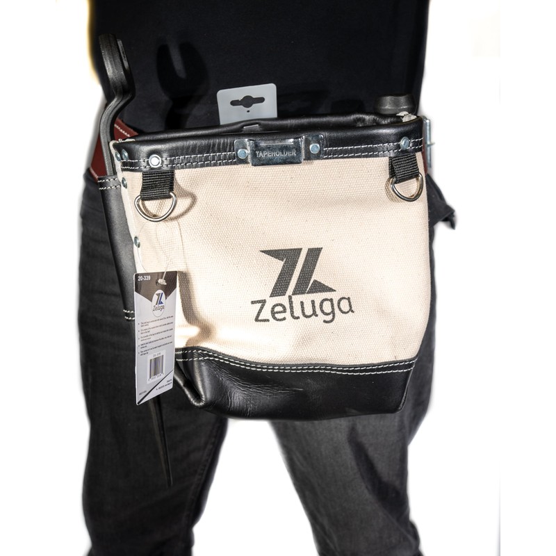 Zeluga 20-339 Fastener Tool Pouch, Bolt Bag with Bull-pin Loop, Clip-On Tool Bag for Tools, Screws and Nails, Tunnel Loop Connection, White Canvas and Black Leather