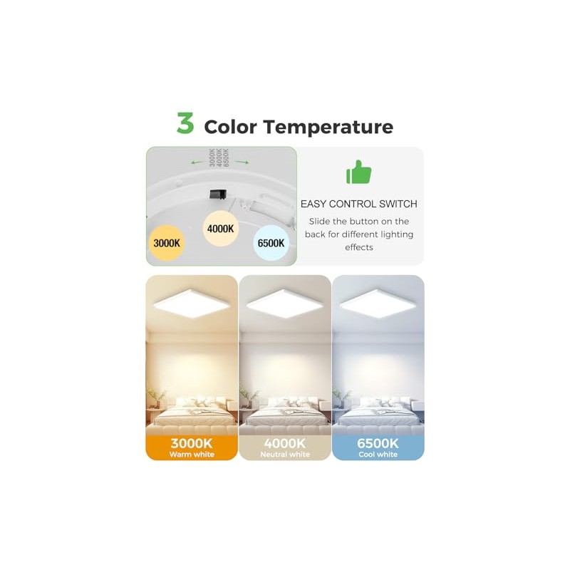 zemty zemty LED Deckenleuchte Flach 28W 29.5cm, 3000K/4000K/6500K Deckenlampe Eckig Panel 3Farben Ultra Dnn Lampen Deckenlampen IP44 Wasserdicht Badezimmer Modern Lampe Decke fr Bad Schlafzimmer Kche Flu