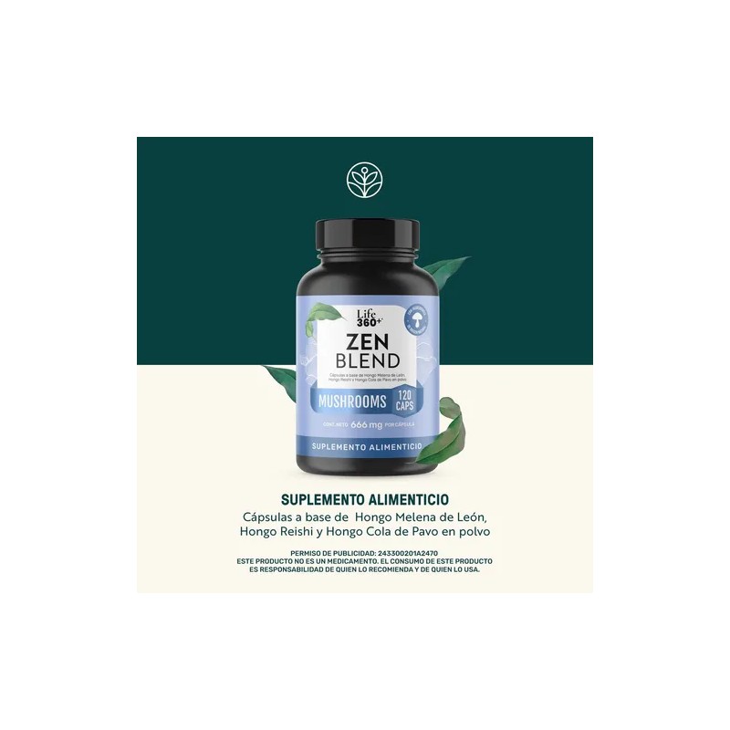 Zen Blend Life 360+ 120 Cápsulas Reishi Cola De Pavo Sabor Sin sabor
