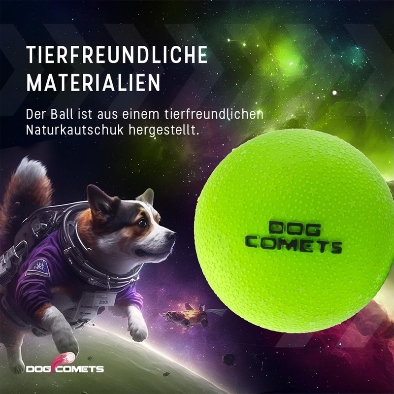 - When developing the Dog Comets Ball Stardust, the safety of your dog was paramount. It is made of non-toxic, animal-friendly materials, so your furry friend can play with it carefree. Whether your dog likes to chew gently or play intensely, this rubber ball will withstand it all, providing endless hours of entertainment and stimulation.