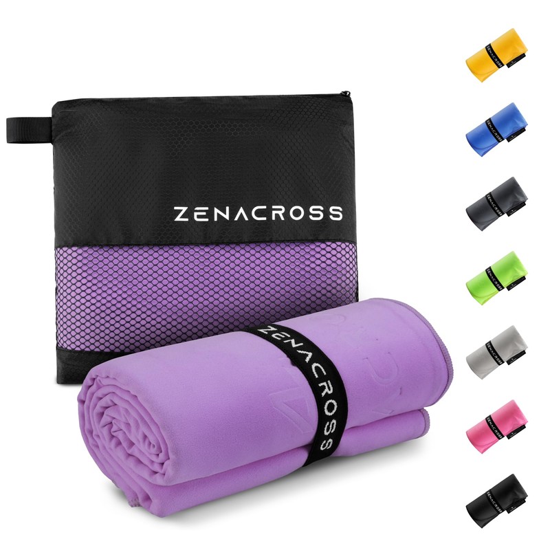 ZENACROSS Microfibre Towel with Transport Bag - Quick-Drying and Versatile Fitness Towel - Sports Towel Sizes M - Purple - 50 x 100 cm