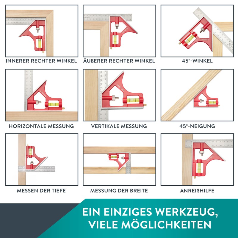 - MULTIPURPOSE FOR WOOD AND METALWORK - With the 15cm combination angles, you can make precise measurements on wooden parts, but they are also suitable for metalwork.
