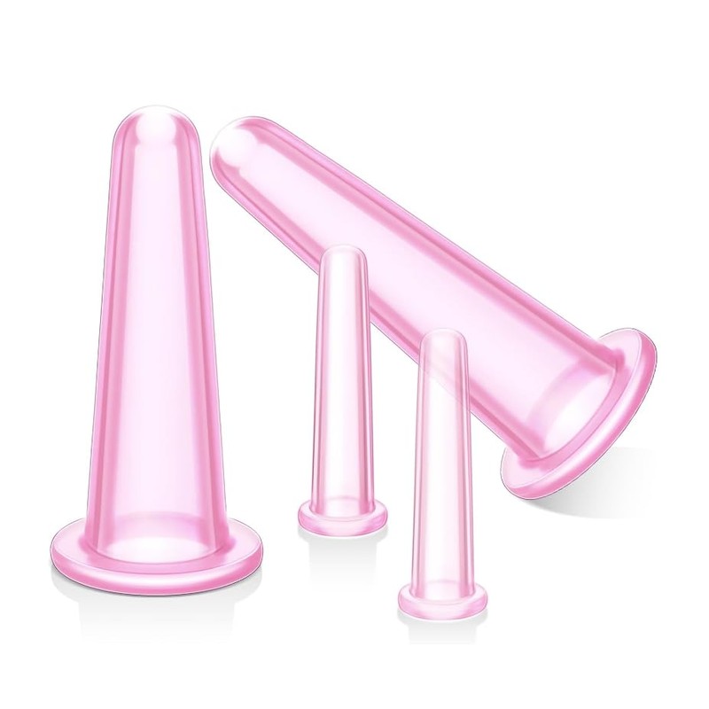 - Cupping Massage Set: This set includes 4 silicone cupping massage cups in vibrant pink color, designed for facial and eye area cupping massage.