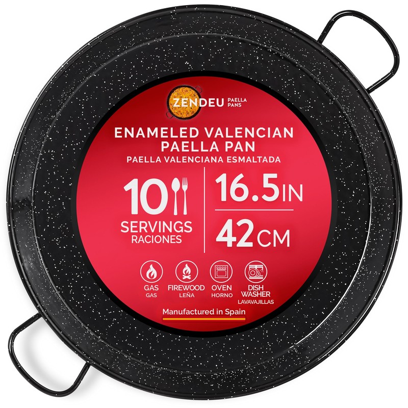 ZENDEU Enameled Paella Pan (Carbon Steel, 16.5 in - 42 cm (10 Servings))