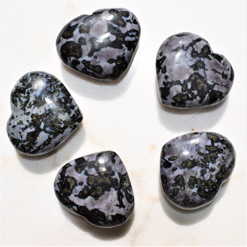 Much like a Diamond, no two Natural Mystic Indigo Gabbro Crystal Healing Hearts are the same. They all have character.