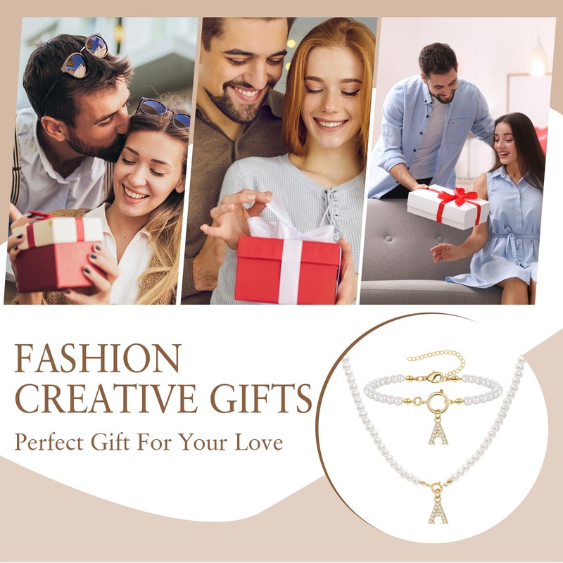 Exquisite initial pearl necklace bracelet set for women, ladies, girls, wife, lover, barbecue friend or colleagues on birthday, Christmas, Thanksgiving Day, Valentine's Day, wedding, anniversary memorial gifts, ceremony or other holidays.
