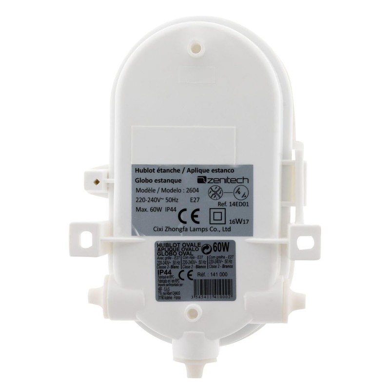 Zenitech Hublot ovale 60W IP44 E27 Classe II Blanc
