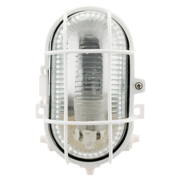 Die kompakte und wei?e Ovalleuchte eignet sich ideal fr den Einsatz in Werkst?tten, Kellern und anderen Feuchtr?umen. Sie ist robust, sicher und bis 650 C flammresistent. Zudem ist sie gegen feste Fremdk?rper und Spritzwasser aus allen Richtungen geschtzt (IP44). Eine Schutzgitter ist mitgeliefert. Die Leuchte ist fr maximal 60 W ausgelegt.