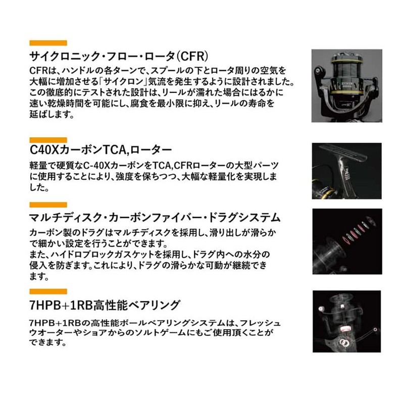 • Spare spool included / Carbon handle arm + EVA lightweight knob / Hard C-40X Carbon TCA+Rotor