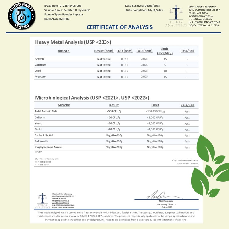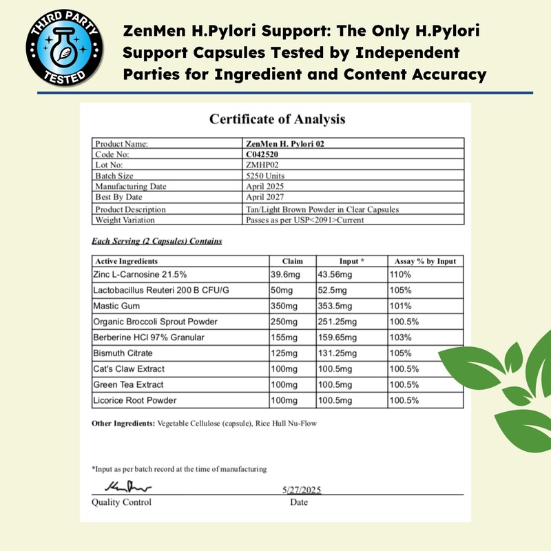 - Zenmen H.Pylori Support capsules are the only ones tested independently to confirm their ingredients and quality. That means you're getting the best for your health and your money.