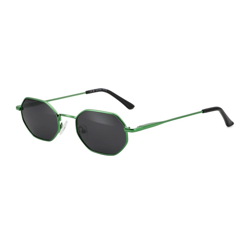 ZENOTTIC Mini Cool Octagonal Sunglasses Women Men Polarised Metal Frame Vintage, Green Frame/Grey Lens