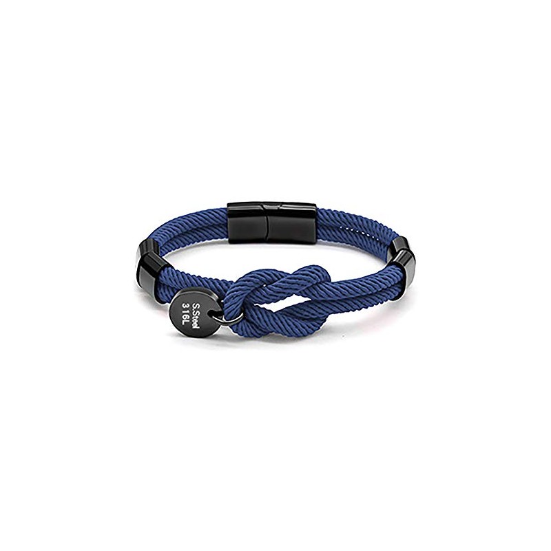 - Men's sailor knot bracelet made of polyester and stainless steel. Its length adapts perfectly to the size of the wrist thanks to a loop. It can be easily closed with a steel hook. With its elegant and trendy style, this bracelet is clearly a modern and contemporary fashion accessory for men.