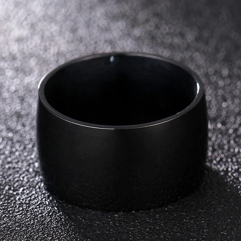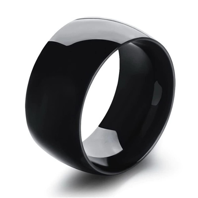 - Very modern men's ring in black. It is made of titanium steel, which is a new alloy that has recently found its way into the jewellery industry. Titanium steel is a special type of stainless steel. This wide, domed ring is an essential accessory for men's fashion. Can be worn on any occasion. Material: stainless steel. Width: 1.2 cm. Weight: 11g