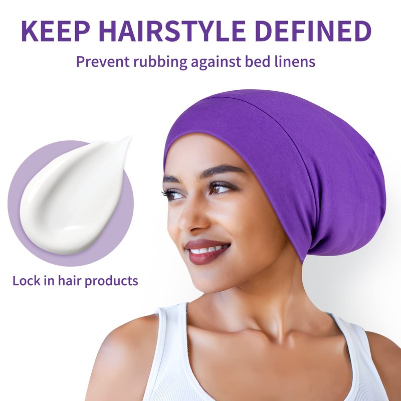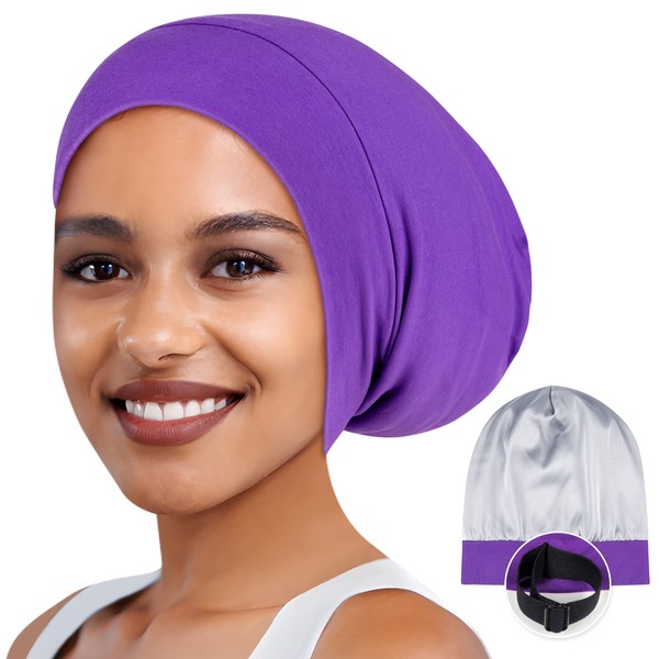 Zenssia Satin Bonnet for Sleeping, Stretchy Satin Sleep Bonnet for Women, Hair Care and Protection, Perfect for All Hair Textures, Purple
