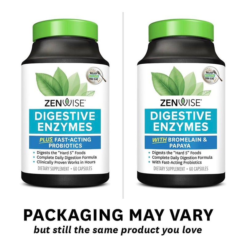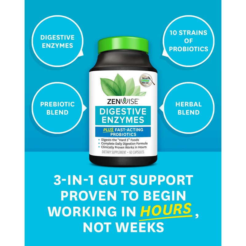 Zenwise Health Digestive Enzymes for Gut Health & Bloating Relief - Multi Enzymes Digestion Supplement with Probiotics, Bromelain & Papaya for Digestive Health Support - Men & Women - 60 Count
