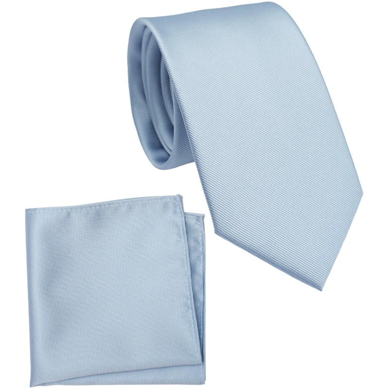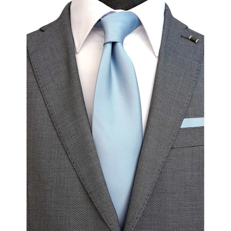 ZENXUS Regular Dusty Blue Tie and Pocket Square for Men, Solid Color Necktie Set, 3.2 inch Standard Width