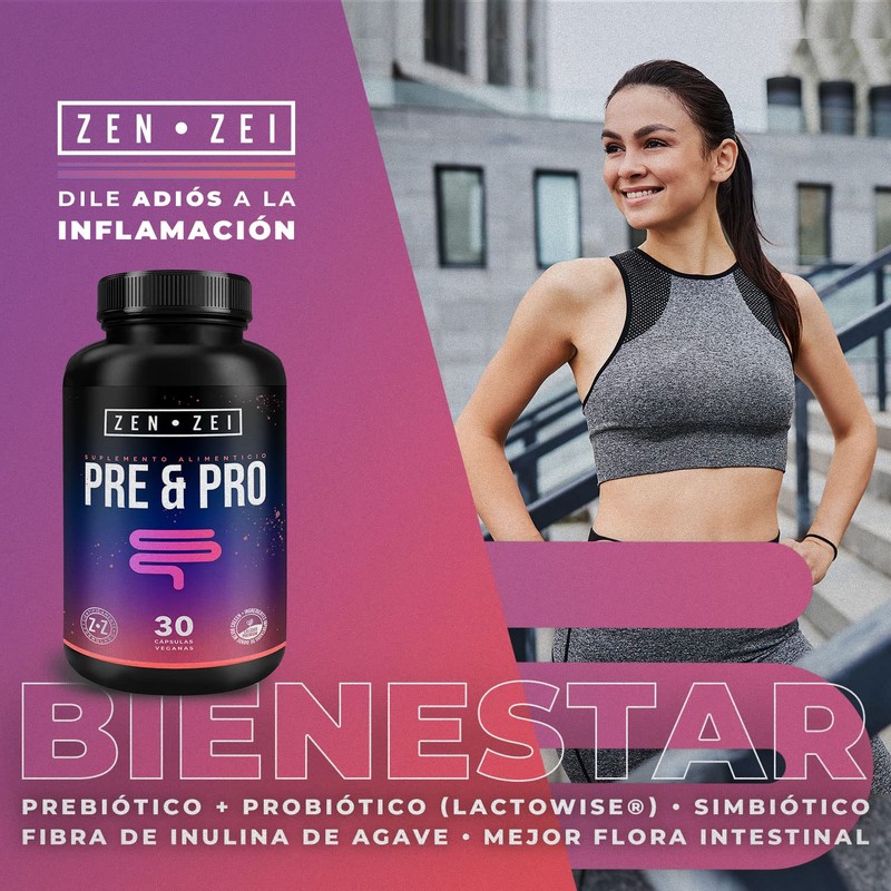 ZENZEI | PRE & PRO BIOTIC | 30 Cápsulas Veganas — Balancea tus Defensas y Digestión con 25 billones de UFC’s vivos — Formulado con: Fibra de Inulina de Agave, Lactowise y MCT Oil | MARCA PREMIUM
