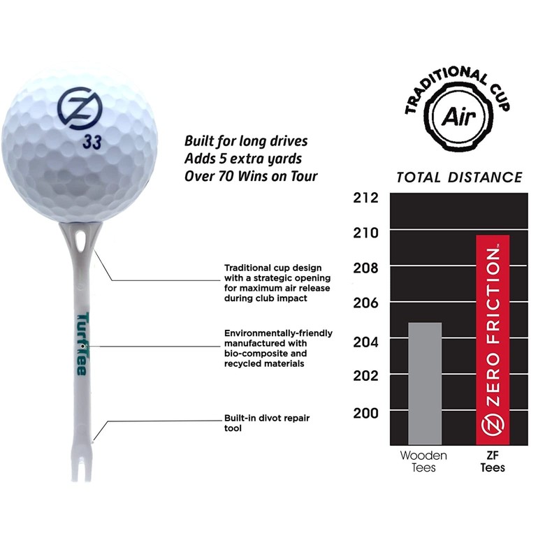 - Zero Friction tees are environmentally friendly and made with bio-composite recycled materials