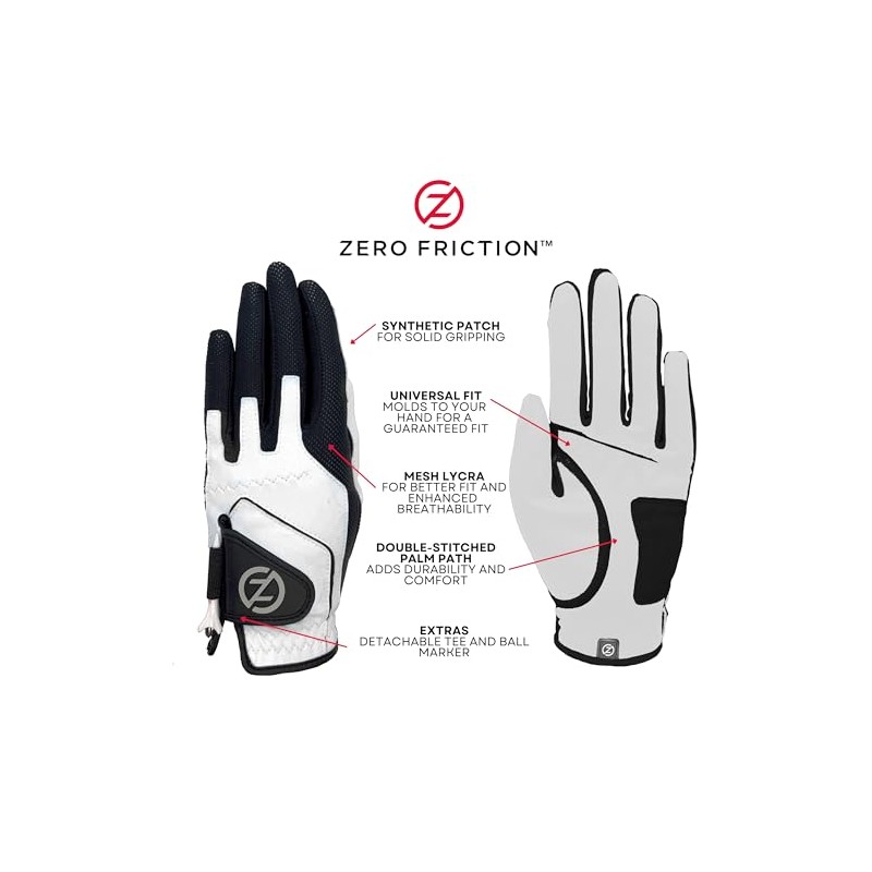 Zero Friction Junior Compression-Fit Synthetic Golf Gloves, Universal-Fit, Ri...