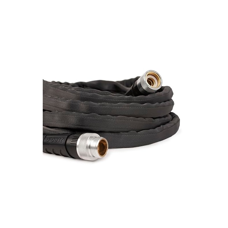 The zero-G hose is the future of advanced hose design. Compared to traditional hoses, the zero-G is 50% lighter in weight which assures effortless handling and easy maneuvering. The zero-G is easy to store, has a high burst strength, (over 600 psi) and is kink-resistant. This hose has the same flow rate as a 5/8” conventional hose, and is cold weather flexible down to 35 degrees. The zero-G features newly designed, ergonomic, crush proof couplings for long-lasting, leak-free attachments. zero-G is lead free and glides smoothly over surfaces without marring or snagging.