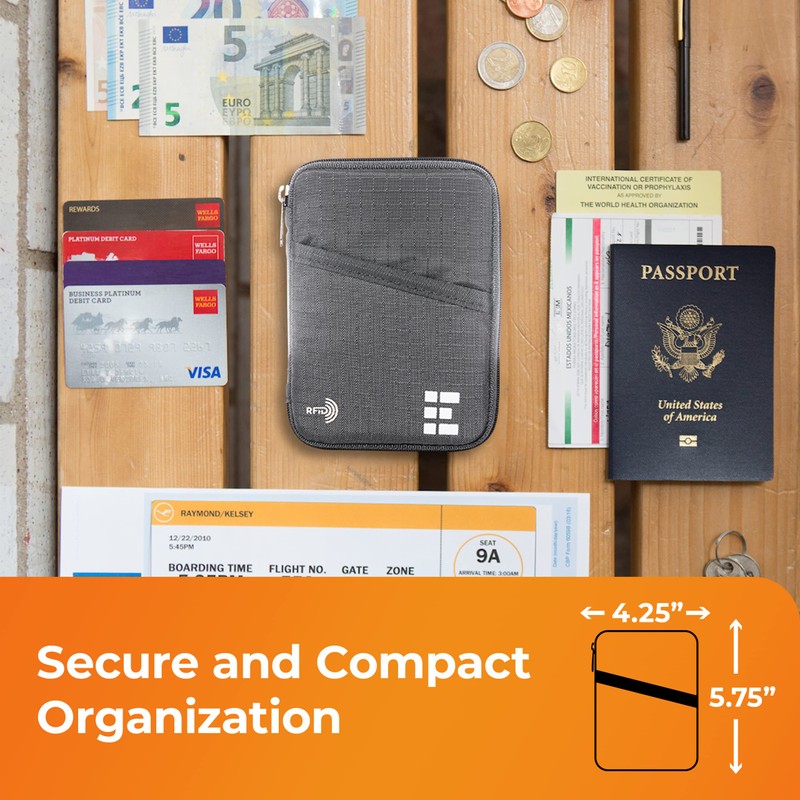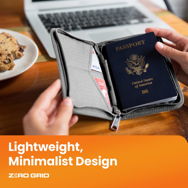 Zero Grid Passport Holder & Travel Wallet with RFID Blocking - Premium Document Organizer Case for Men and Women - Holds Passports, Cards, Tickets, ID, Cash - Compact Zippered Wallet - Shadow