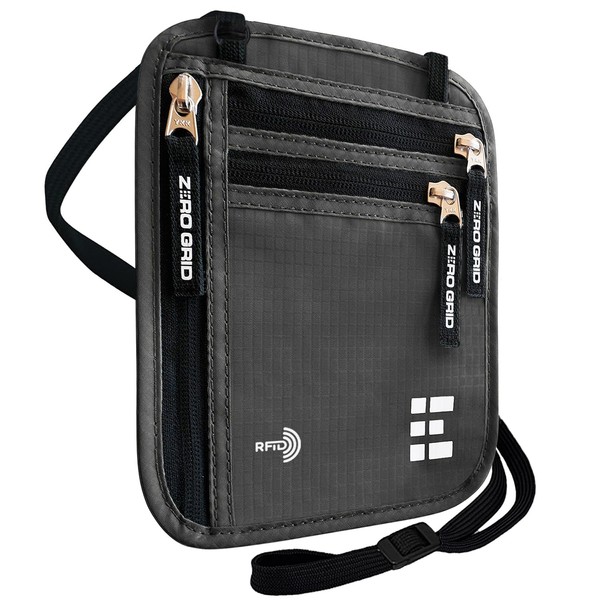 Neck Wallet for Travel & Passport Holder with RFID Blocking - Slim & Easy to Conceal Nylon Travel Pouch for men & women - Holds Phone, Cash, Cards, Keys - Sweat & Water Resistant - Large - Dark Grey