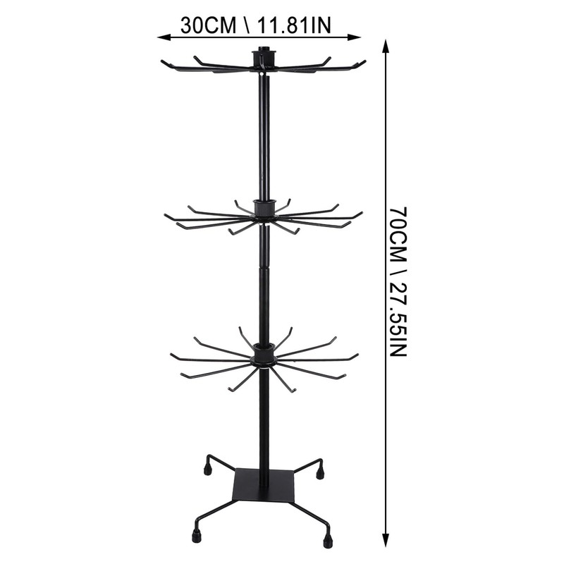 • Hat Rack Stand Rotating Display: 3- tier display rack display rack stand is enough for you to store hats, jewelry, hairbands and other items.hats display rack rotating retail hat rack stand