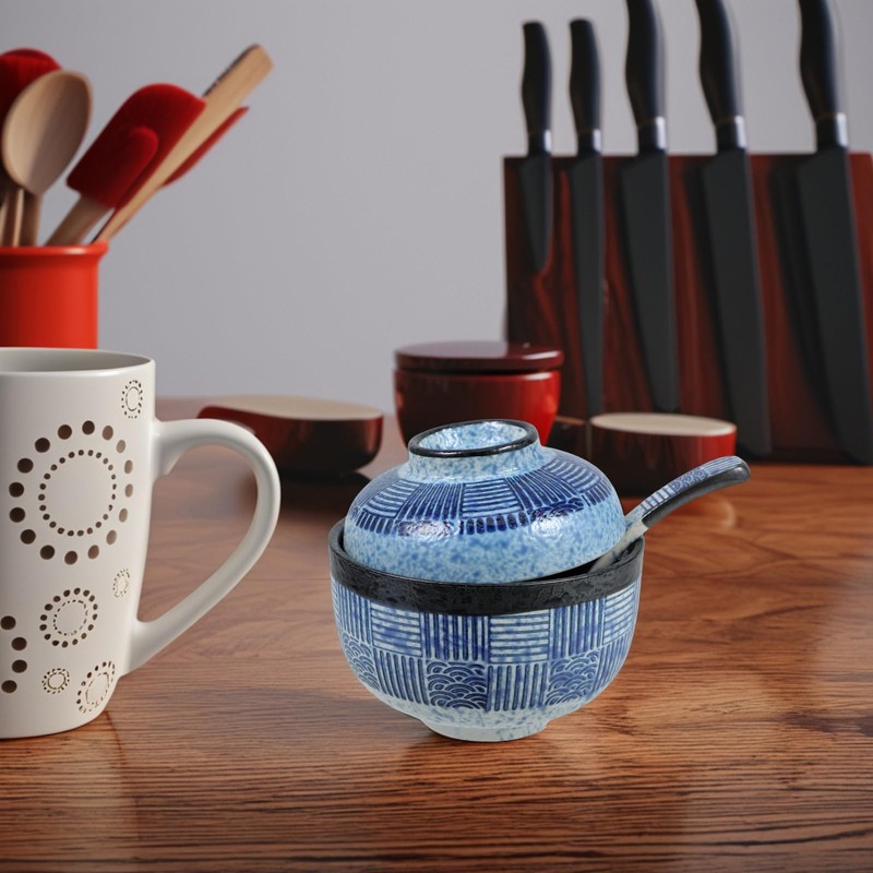 - 🥗🍨🍧🥣【japanese dinnerware】manufactured with stable material, with smooth bowl surface, a good for friend and family. japanese style soup bowl with lid and spoon set miso soup bowl rice bowl snack bowl dessert bowl appetizer bowl