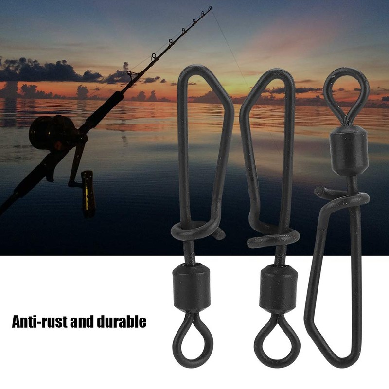 Zerone 20PCS Fishing Swivel Tackle and Snaps Rolling Swivel Copper Swivels Rigs Kit with T-shape Snap in Black