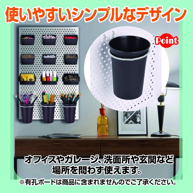 - Cup holder is simply inserted into the hole on the perforated board. Once you set the cup, you can display your pens, small tools, plants and more. Can also be used for wall storage