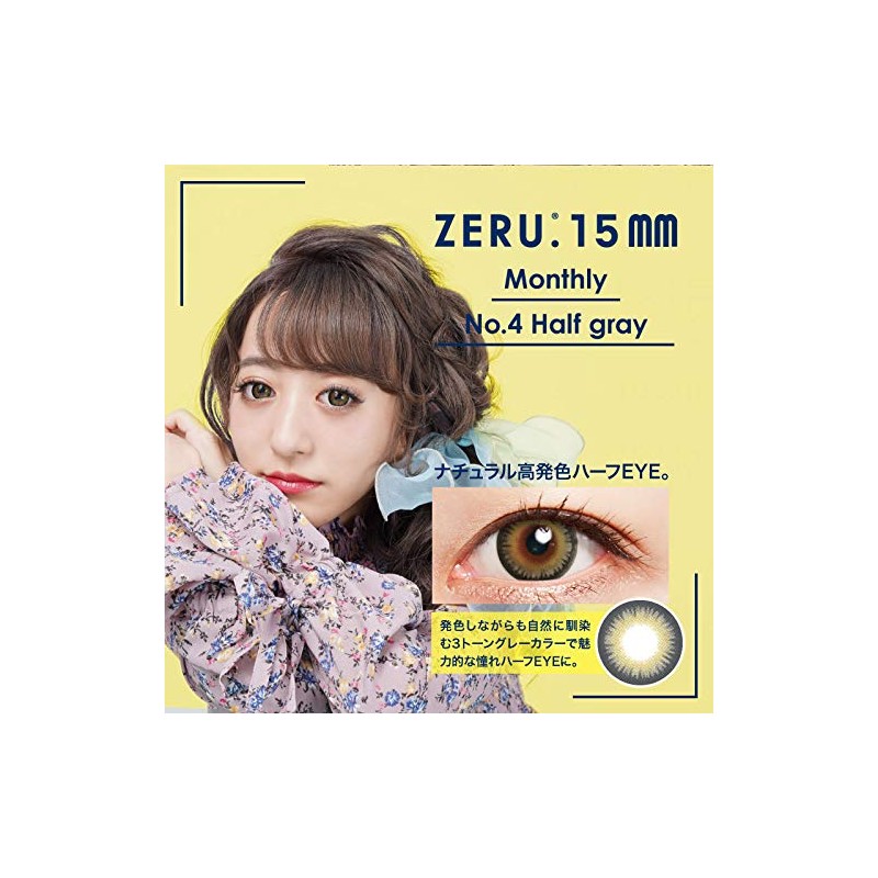 カラコン ZERU.15mm ナチュラル マンスリー 1箱1枚 1Monthly No.4 ハーフグレー【BC】8.7 【PWR】-1.25