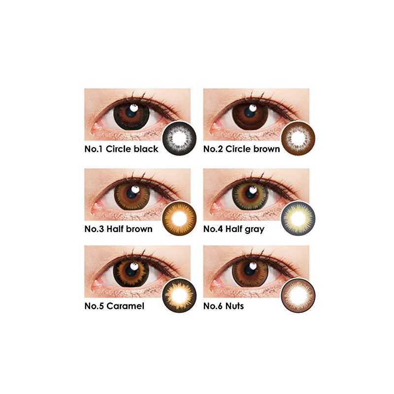 - ・No.5 Caramel:絶対はずさないブラウン×ブラックカラーの鉄板ミックスカラー。 ・No.6 Nuts:「攻め」と「ヌケ」を兼ね備える進化したフチありカラコンでおしゃれ感をアピール。